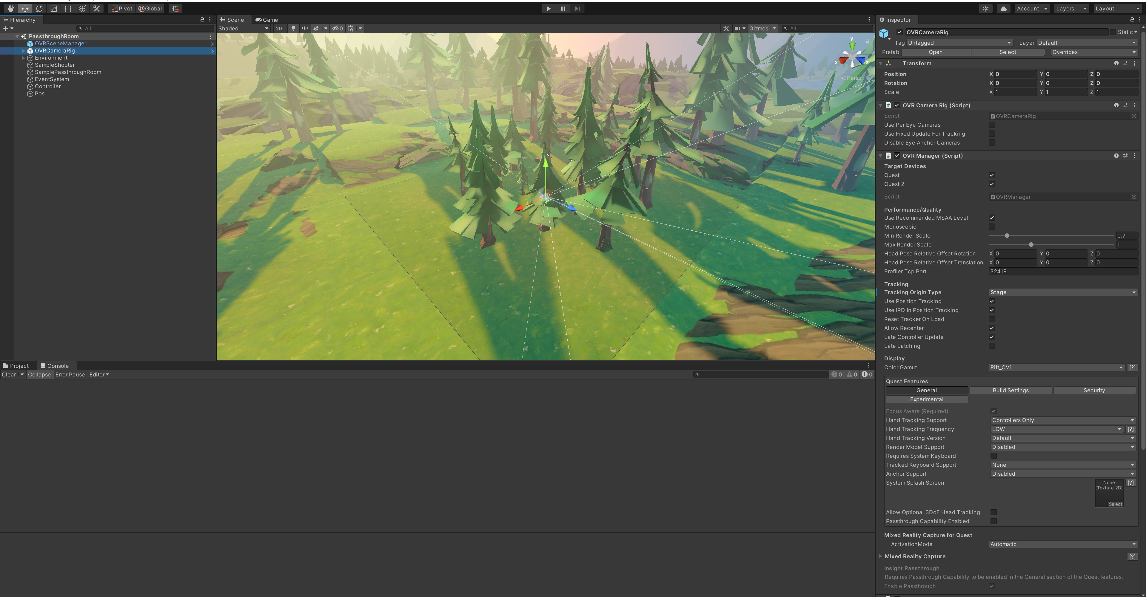 | https://github.com/oculus-samples/Unity-TheWorldBeyond 유니티에서 공식적으로 제공해주는 프로젝트 기반으로 작성된 글입니다. 사용한 유니티 버전 : 2020.3.18f 사용한 VR 기기 : meta quest 3 |