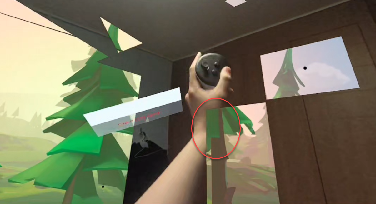 위 사진과 같이 손이랑 컨트롤러가 이미지 뒤로 가서 가리는 문제가 있습니다. 해당 문제는 레이어가 실물 위로 올라가도록 기본적으로 설정되있기 때문입니다. 해당 문제를 방지하기 위해서는 기본적으로 손에 오브젝트를 붙여주게 됩니다.