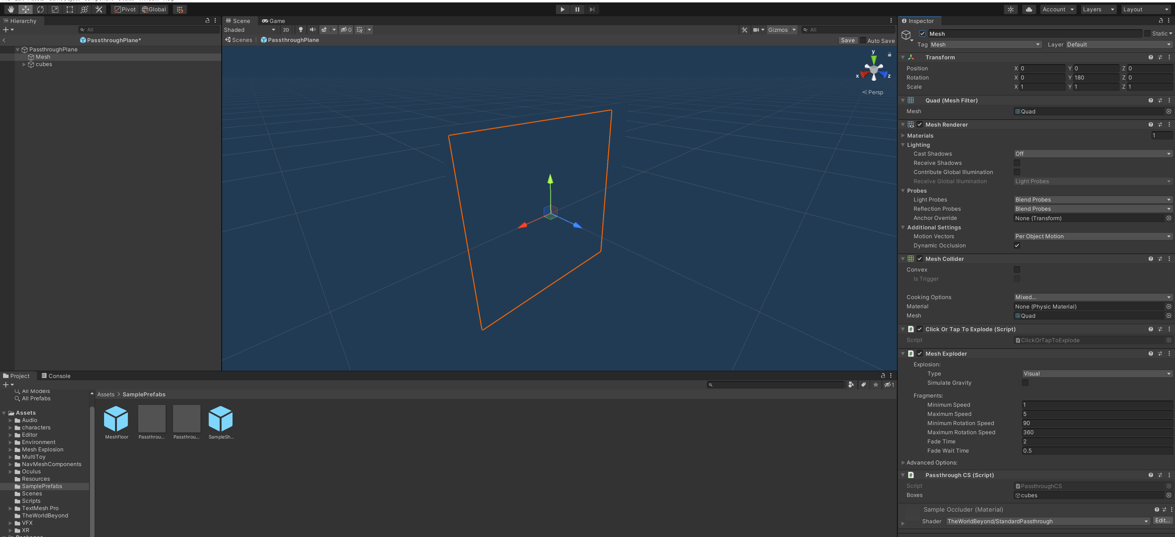 해당 mesh 가 위에서 벽 역할에 해당되며 이에 대한 모양을 변형하게 되면 MR 상에서 현실 세계를 보여주는 벽 모양이 바뀌게 됩니다.