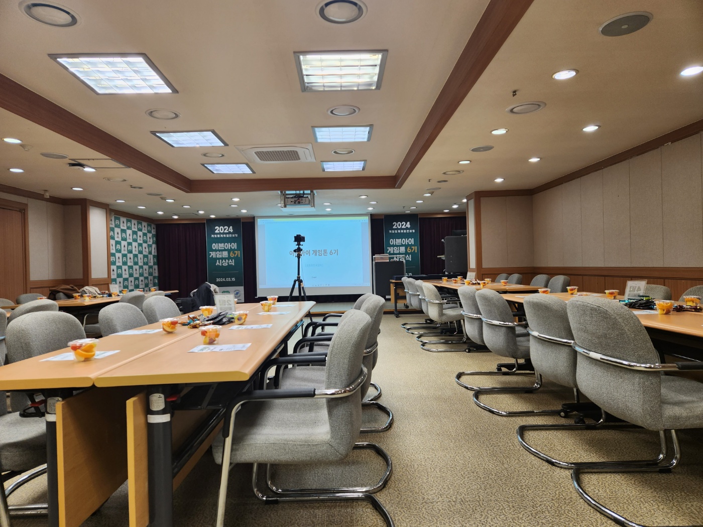 각 인별로 과일 간식과 팀별로 과자랑 사탕이 준비되어 있었고 물도 나눠줬습니다! 역시 팀별 7명 정도에 7팀에 컨설팅을 도와주신 NPC 분들까지 한 50명 넘는 자리이다보니 넓은 곳에서 진행되었습니다.
