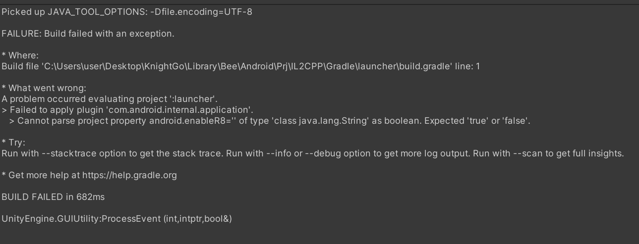 Build file 'C:\Users\user\Desktop\KnightGo\Library\Bee\Android\Prj\IL2CPP\Gradle\launcher\build.gradle' line: 1