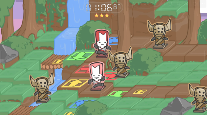 오랜만에 글을 작성하게 되었는데 이번에는 타일 맵 기반 게임 만든 방법에 대해 작성 해볼까 합니다. 먼저, 이 게임을 만들게 된 계기는 퍼즐 게임을 만들고 싶었는데 완전 퍼즐은 아닌 긴박한 긴장감을 주는 게임을 만들고 싶었습니다. 그러다가 생각난 전에 플레이 했던 “Castle Crashers” 라는 게임 안에 미니 게임 형식으로 아래와 같은 게임이 있었습니다.