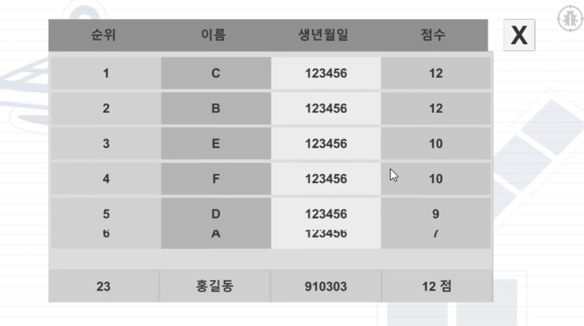 그렇기 때문에 기존 랭킹 값이 필요한 이유는 랭킹 n 번째에 어떤 m 오브젝트가 있는지 확인하기 위합니다... 스스로 생각해도 너무 복잡한 거 같아서 수정할려고 했는데 머리만 터지고 실패... 다음에 더 좋은 방법이 생각나서 수정해서 올려보겠습니다.