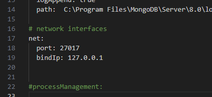 다음과 같이 뜨는데 여기서 bindIp 이 기본적으로 127.0.0.1로 설정되어 있는데