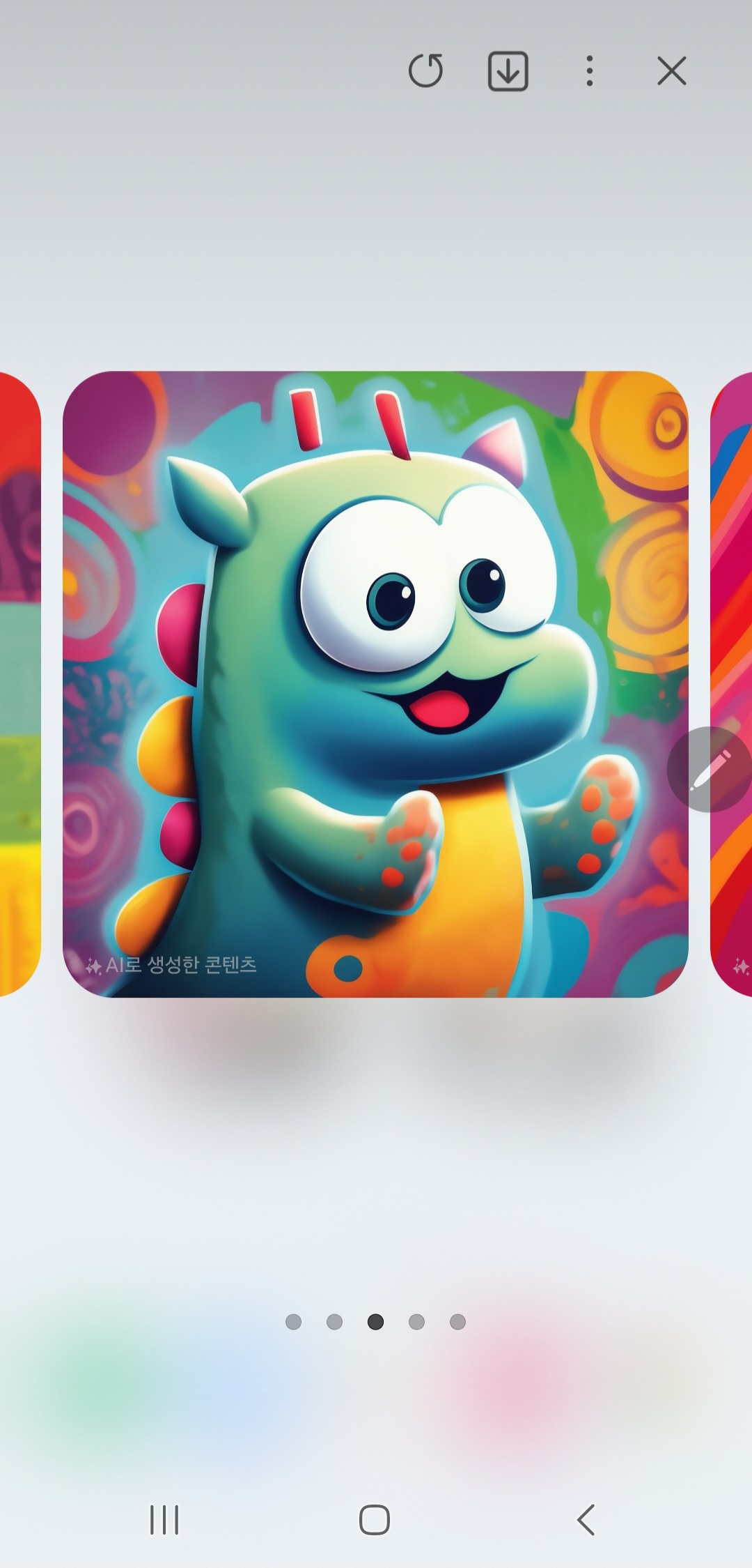 참고로 변환을 하면 총 5개 정도 그림을 뽑아주기 때문에 여러 느낌을 비교해볼 수 있습니다.