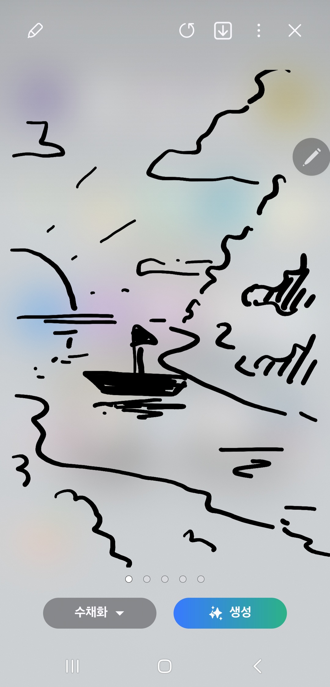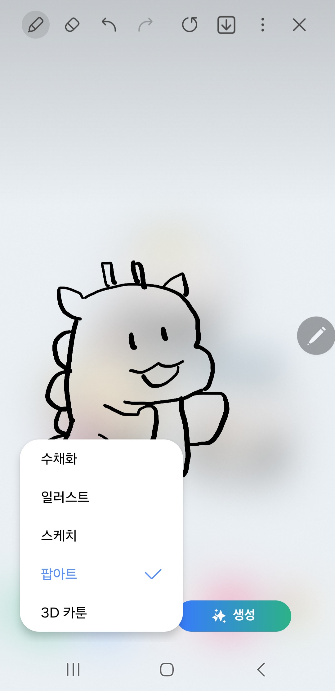 다 그린 후, 아래 변환 화풍을 선택할 수 있는데 종류는 수채화 / 일러스트 / 스케치 / 팝아트 / 3D 카툰으로 꽤 많습니다.