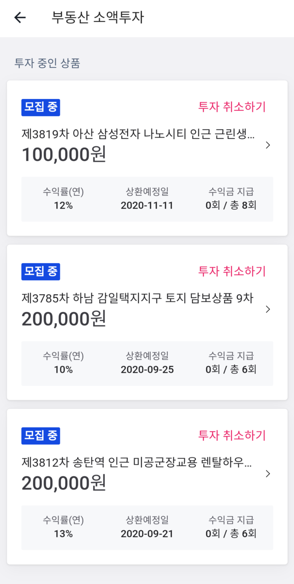 아마 제일 궁금하신 점은 과연 수익이 났는지 원금 손실은 안 일어난지에 대한 여부일텐데요. 아쉽게도 저도 이제 막 투자한 것이라 일절 내용이 없네요. 이에 대해서는 몇 개월 뒤에 후기를 남기도록 노력해보겠습니다.