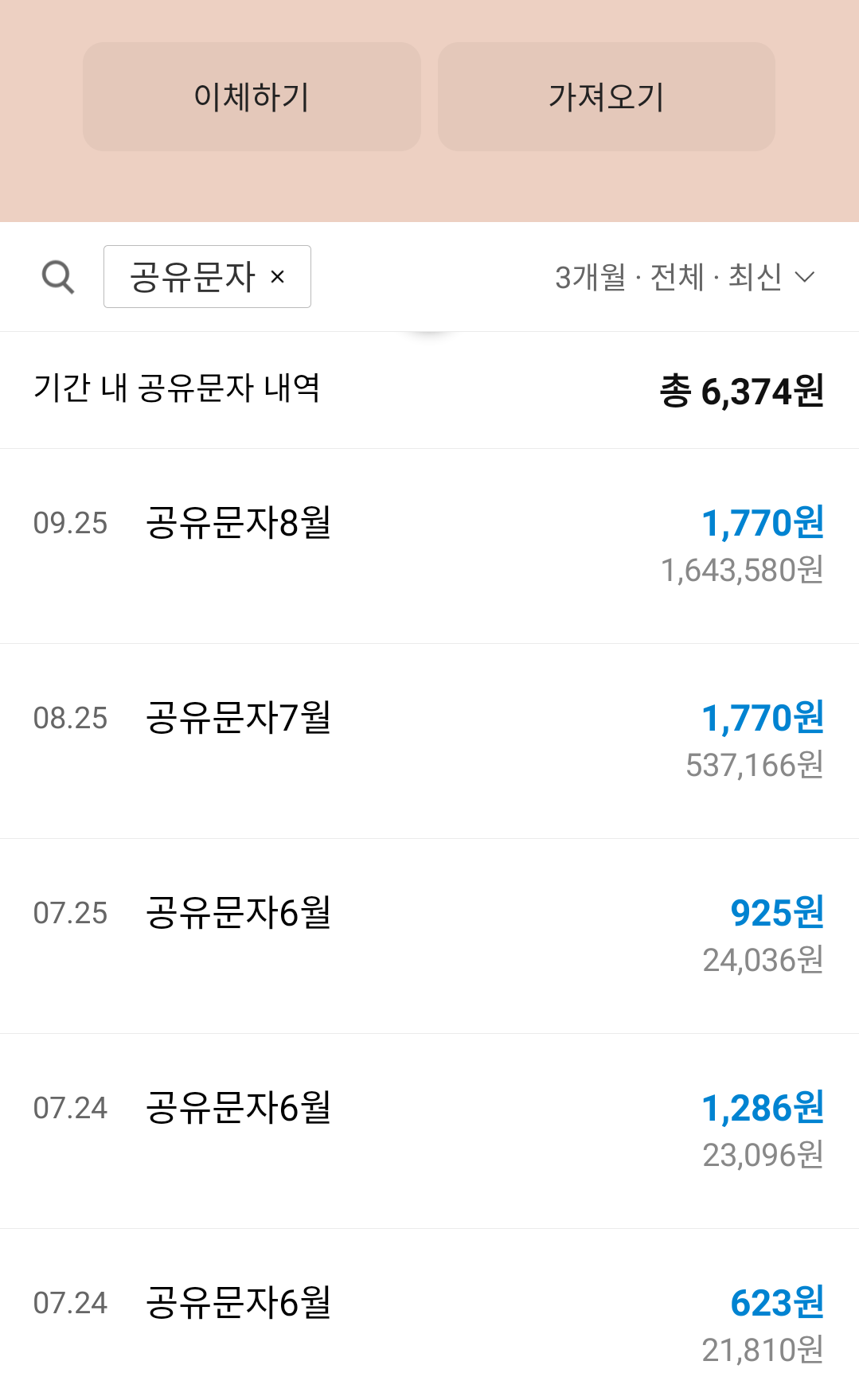 남는 문자 공유하면 페이백~!
